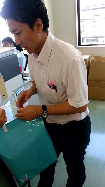 ちょうど紙袋の受け渡しの瞬間を