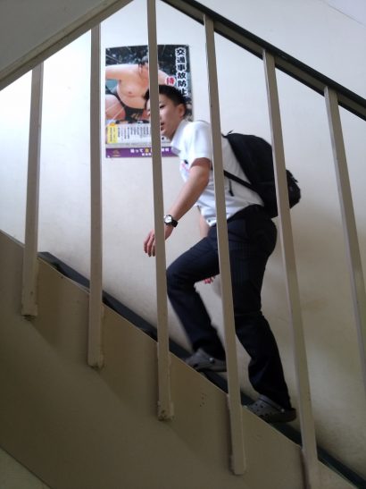階段をのぼっています。見ればわかりますね。