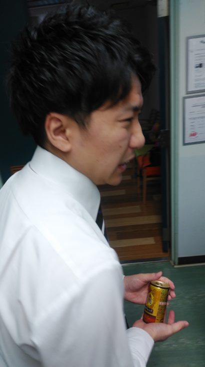 自販機で缶コーヒーを買った帰りです。