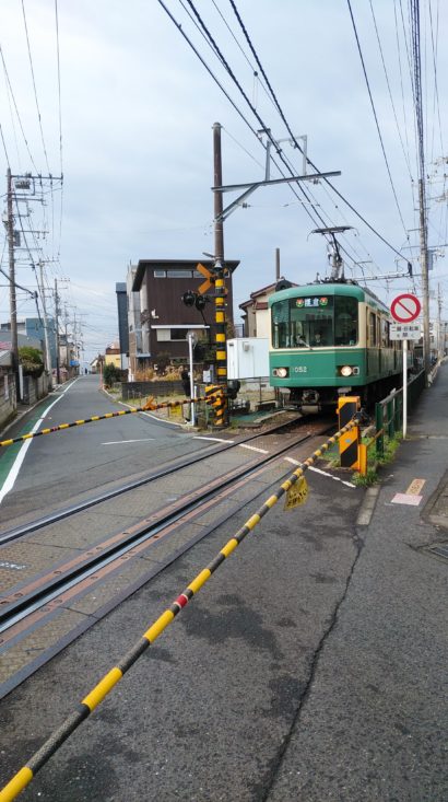 適当な踏切と海と江ノ電の構図をパシャリ。