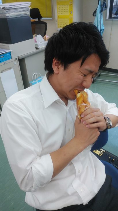 パンを引っぱろうとする瞬間くらいに見えますね。