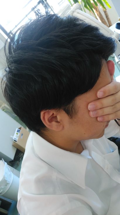 今日は撮影する直前まで顔を隠そうと
