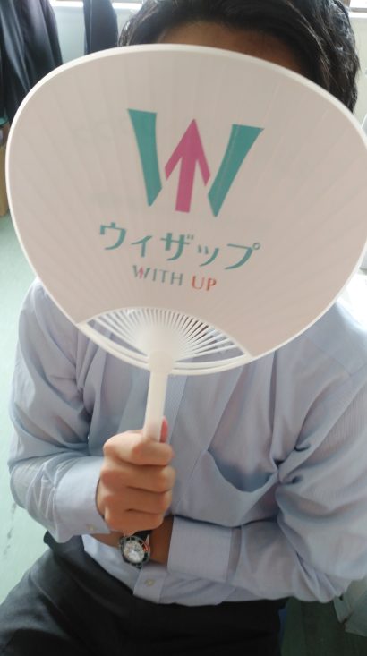 うちわできれいに隠しています。