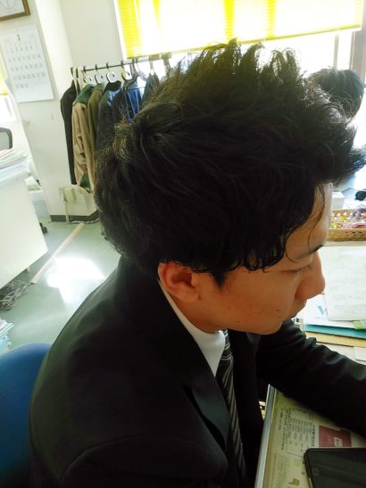 営業フロアの窓にかかっているブラインドが黄色いからですね。