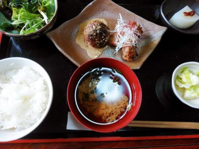 私は手ごねハンバーグ×煎りエゴマのタレと