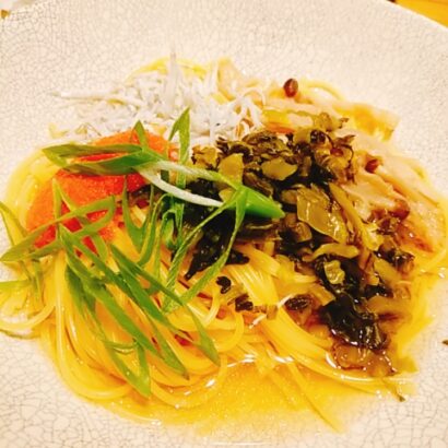 だから写真のようなロングパスタでスープ少なめは初めて。