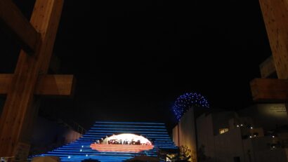 夜にライトアップされて見る踊りもいいですね。
