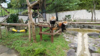レッサーパンダを室内から外へ出すところへ遭遇。