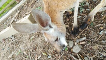 カンガルーの飼育場に入って、柵越しではない