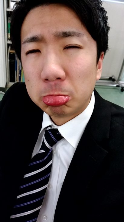 変顔をしていますね。