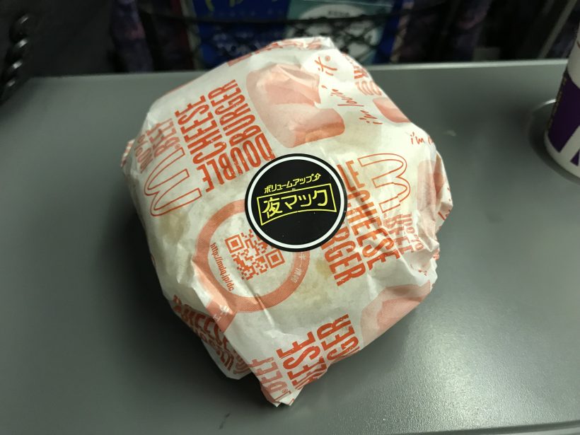 マクドナルドさんの夜マックで倍ダブルチーズバーガーをいただきました。