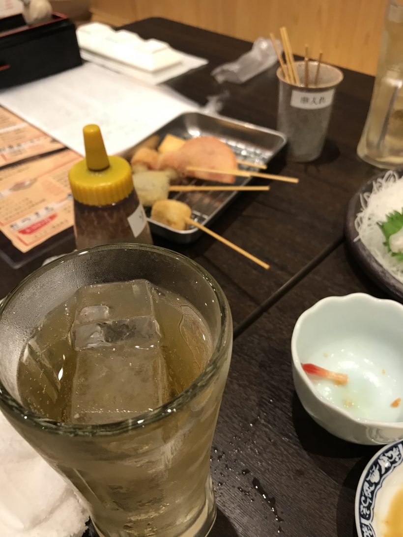 今日は、新潟に戻り、久しぶりに会社そばのデッキー401裏手にある、串揚げ「あ」さんに来てました。