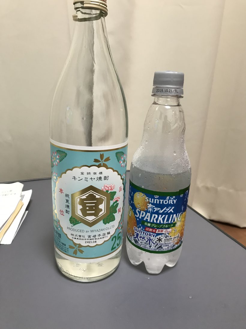 結局、コンビニでソーダ水を買ってきて焼酎に割って飲んでました。