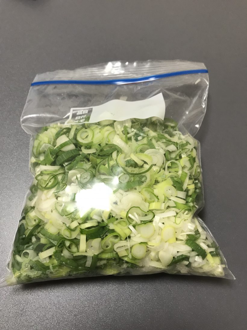 早速、今日買ってきたねぎを刻んでフリーザーバッグに入れました。