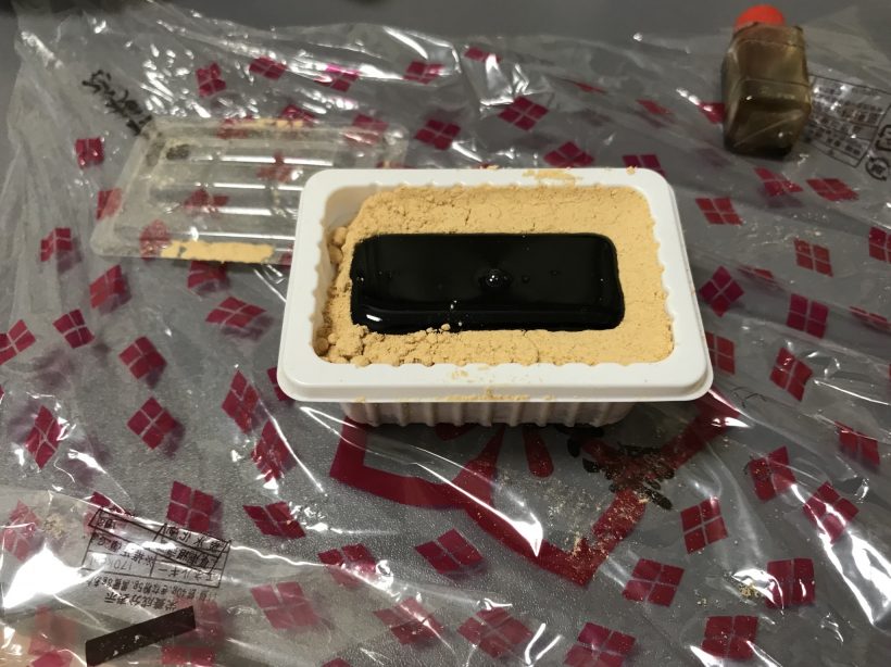 信玄餅は、風呂敷で包まれていますが、きな粉がこぼれる前提で、このような梱包になったのかなーなんて思います。