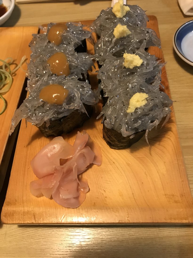 腰越の「かご家」さんにお邪魔して生しらす軍艦をいただいてきました。