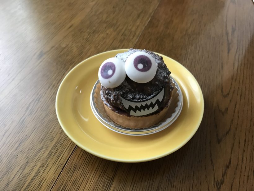 妖怪にはまっている息子は大喜びで、私のケーキについていた目玉を一つとってオリジナルのデコレーションをしてたのしんでました。