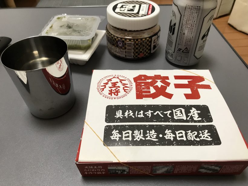 昨日木曜日は、近所の「大阪王将」さんの「ぎょうざデー」だったので、ぎょうざ一人前241円(税別)が190円(税別)でいただけるので、持ち帰りで2人前購入し、一人でぎょうざパーティーを楽しみました。