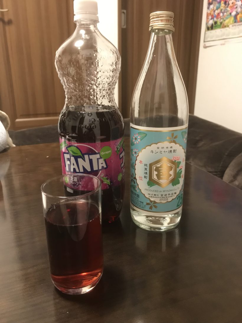 今日は、ファンタグレープでわって、グレープ酎ハイぽくいただきました。