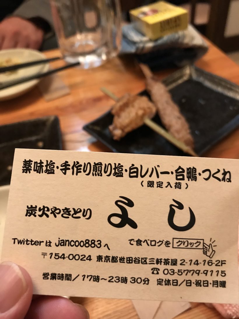 帰りは、三軒茶屋の人気店、「炭火やきとり よし」さんにおじゃましました。
