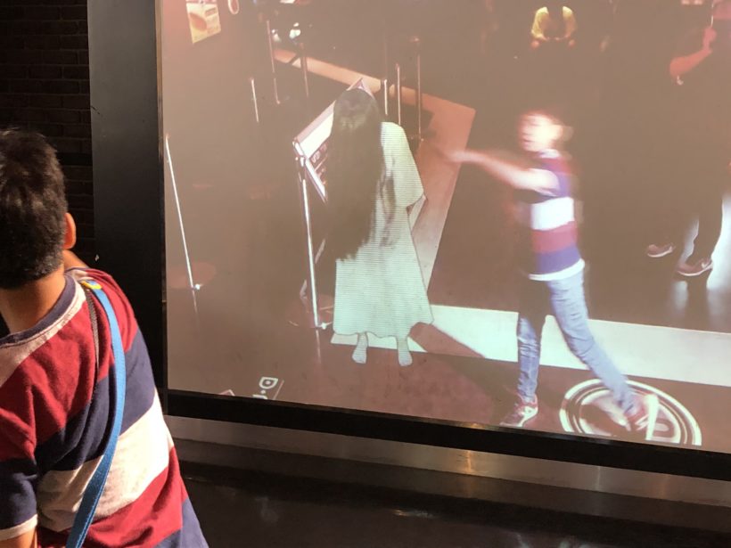 画像は、スクリーンに映った息子と貞子のCGとの共演ですが、ありえない映像に息子は喜んで長い時間、スクリーンの前で踊ってました。