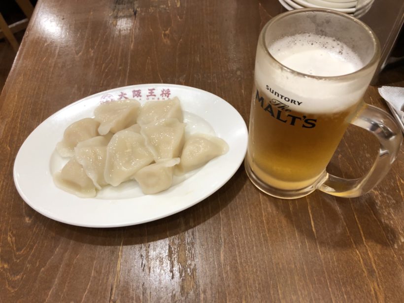 水餃子をつまみにビールで一杯。
