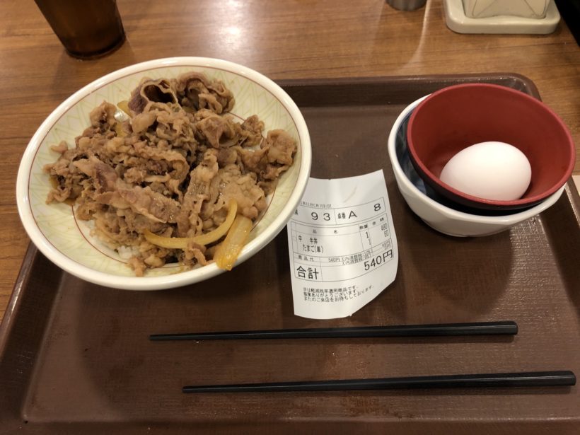 「牛丼中盛」+玉子がきてしまいました。