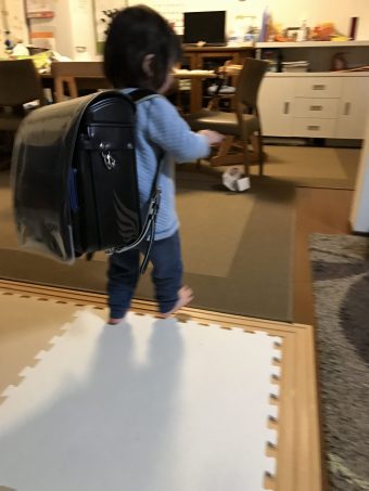なぜか、娘が気にいってランドセルを担いであそんでました。