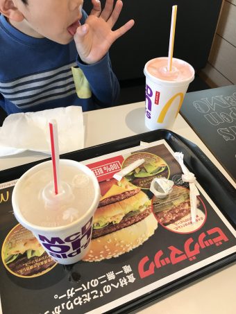 ちょうど、今日の参観日でがんばった事と宿題をきちんと終わらせたことのご褒美に「シェイクが飲みたい」と言うので、つれてったのですが、