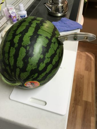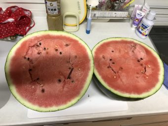 我が家は、子ども達もスイカが大好きなので、普段見たことがない大きいスイカを見て大喜びでした。