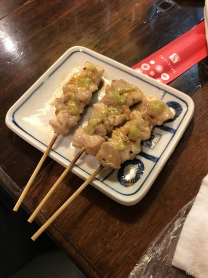 中でも気に入ったのが、画像のようにわさびをつけた焼き鳥が美味しかったです。