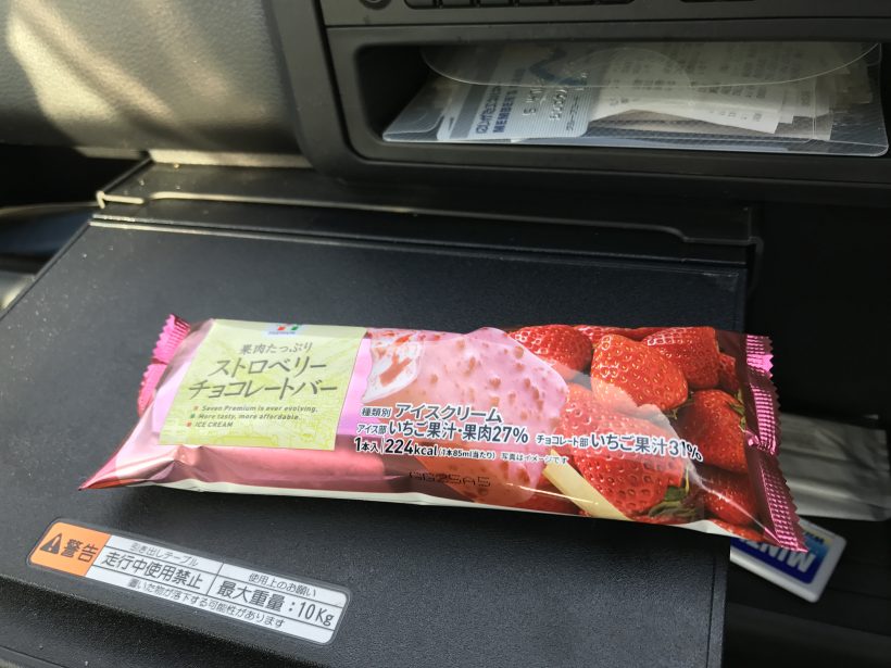 セブンイレブンさんのストロベリーチョコバー。苺の味が濃厚で美味しいです。