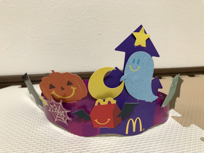 マクドナルドさんに先日いただいたチケットで、ハロウィン用の仮装飾りをもらってきました。