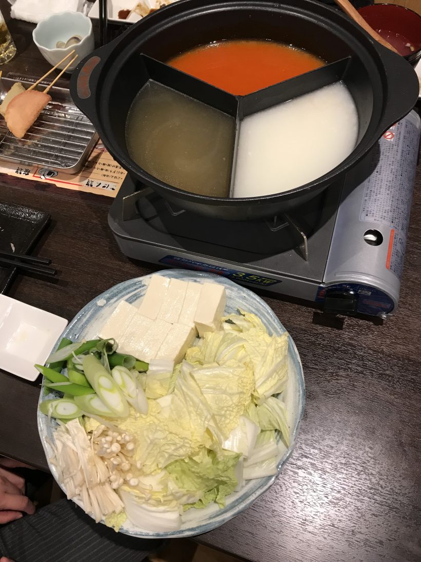 「串鍋」という、3種類のスープに串にさした素材をしゃぶしゃぶして食べる鍋料理だったのですが、美味しいスープに素材の味が合わさってとても美味しかったです!