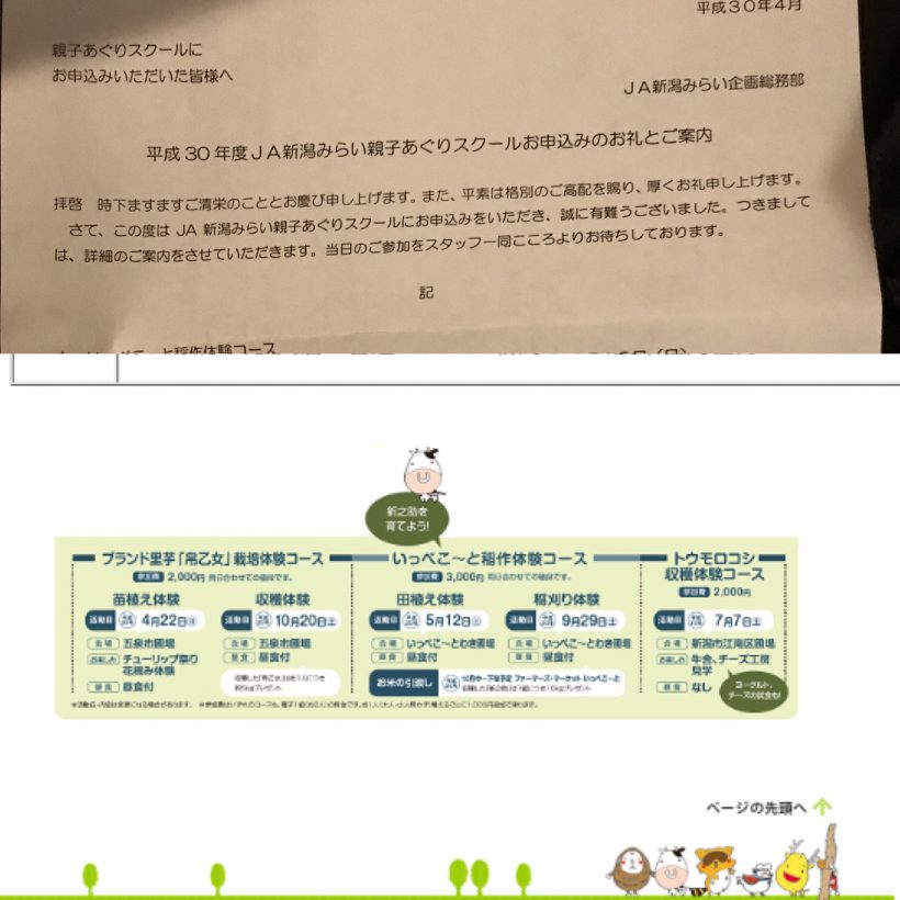 JA新潟みらいさんの「親子あぐりスクール」の抽選に当たりました!
