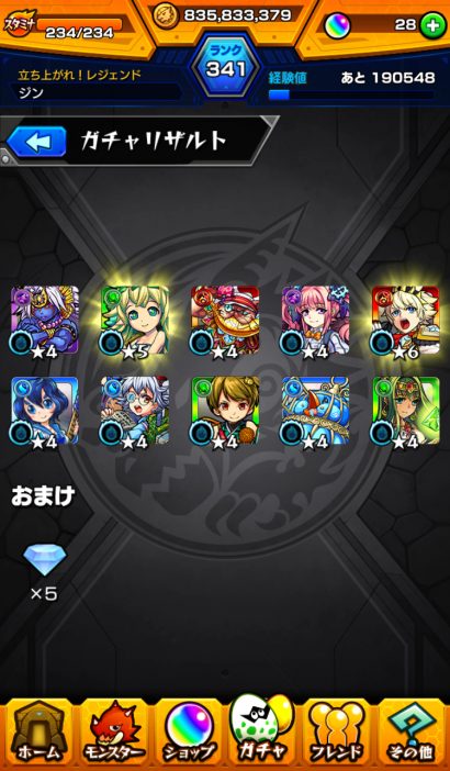そんな訳で10連回せる分だけを購入してガチャリ↓
