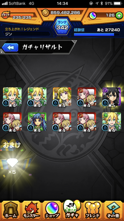 キリトとアスナをゲットして満足感を得ている私ですが、同時にシノンが中々出ず歯がゆさを感じています…(^^;;