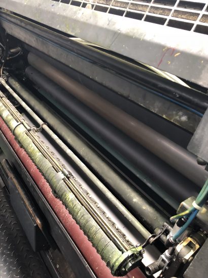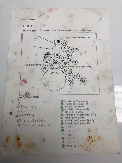今日の予定としてはローラーを機械から外すだけの予定でいましたが、明日新品のローラーを組み込んで調整してテスト刷りの工程をやるとなると時間が足りないと言う結論に至ったので、ローラーをある程度組み込むところまでやりました。