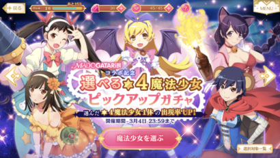 最初はリセマラも考えましたが、前回のガチャで欲しかった魔法少女が手に入ったのと今回のガチャで魔法少女に付けたかった装備が皮肉にも出てしまったので、リセマラを諦めてこのまま進める事にしました…