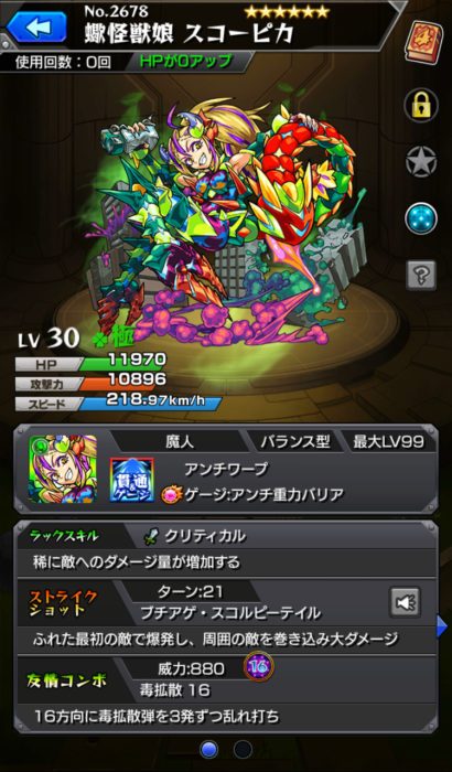 激・究極の「スコーピカ」だったり中途半端にラックを上げて終わっていたキャラを運曲にする事が出来ました(^^)