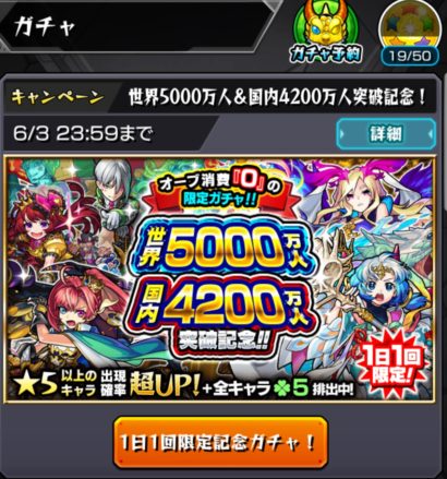 そんな今日は少し前から実施されている記念ガチャが1日1回限定で10日間オーブ消費なしで引けるようになっています✨