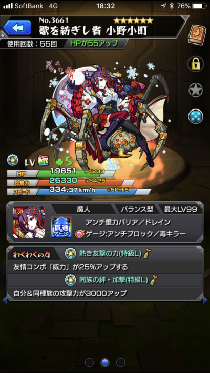 そして紋章力が5千を超え爆絶「クシミタマ」なんかをやるようになってから小野小町に紋章をつけっぱなしにしている訳ですが、英雄の証が20個以上ストックできてる上に小野小町に英雄の証をつけていなかったので、ようやくというか今更ですが英雄の証を付けました(^_^;)