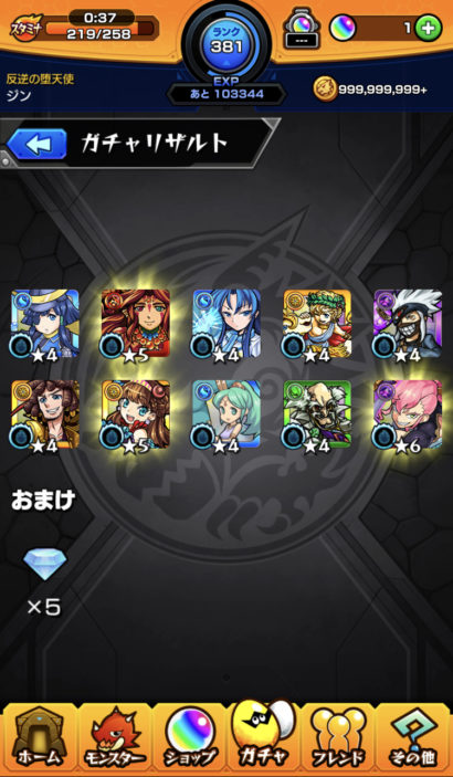 モンコレDXを引く事は正直あまりないし夏休みガチャで黒川所長から貰ったオーブも使ってましたが、少し残っていたオーブと降臨クエストを何個かクリアして、何とか50個集め10連できる状態に(^^)
