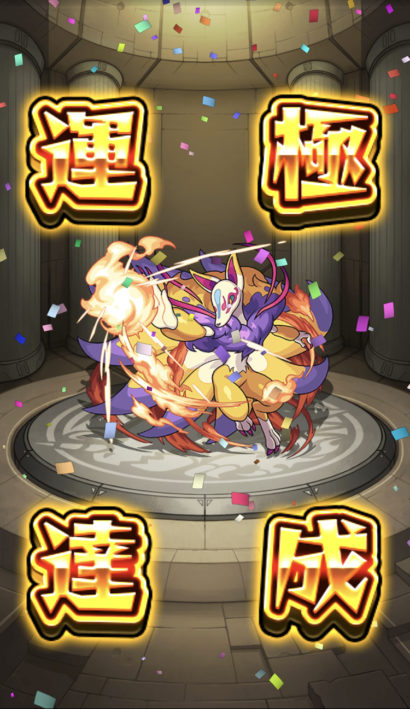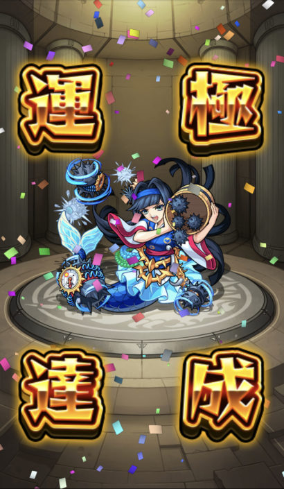 妖怪ウォッチコラボのキュウビと超肉祭?のオラゴンに加えて、書庫で水属性ドロップ率2倍だったんで、1番ラックが高かったナギサも運極にしてしまいました✨