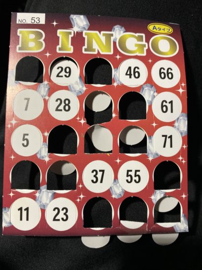 今年のメインであるビンゴの景品が中々に豪華だったので、ビンゴを期待するもリーチがかかるばかりでビンゴにはならずそのまま終了。