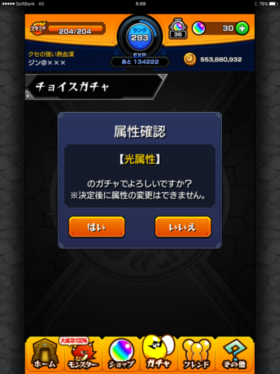 私は、対イデア用にというか個人的にアベルが欲しかったので、今回は光属性を選択する事にしました(^-^)