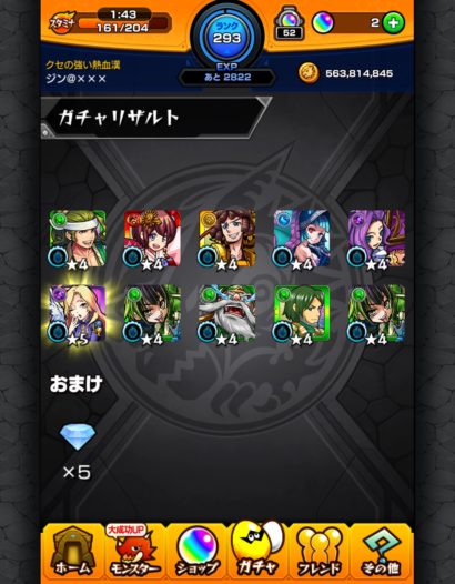 ガチャ画面に移行して引っ張ったらガチャリドラの目がパチクリしたので、上位キャラの確定に胸を膨らませていました(笑)
