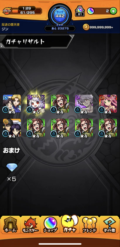 早々に結果ですが、今回も10連で勝負するもコラボキャラは出ずに2体目のタナトスさんゲット。