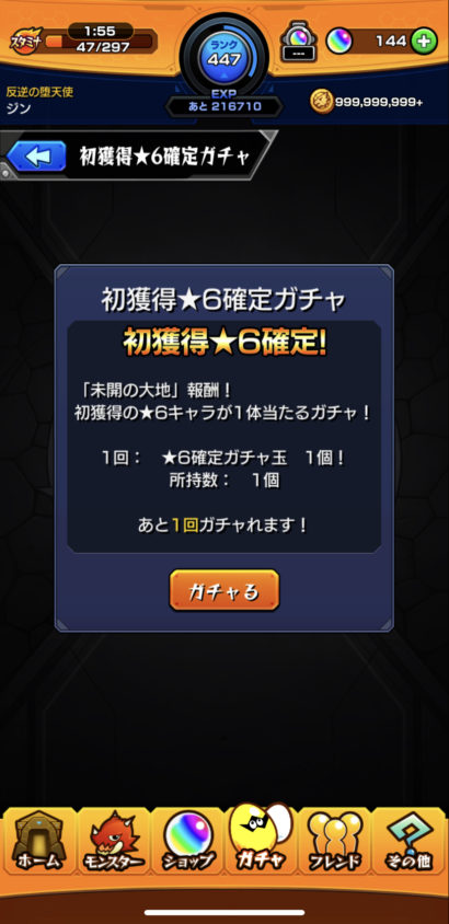 で、クリアからの報酬の「初獲得☆6確定ガチャ」