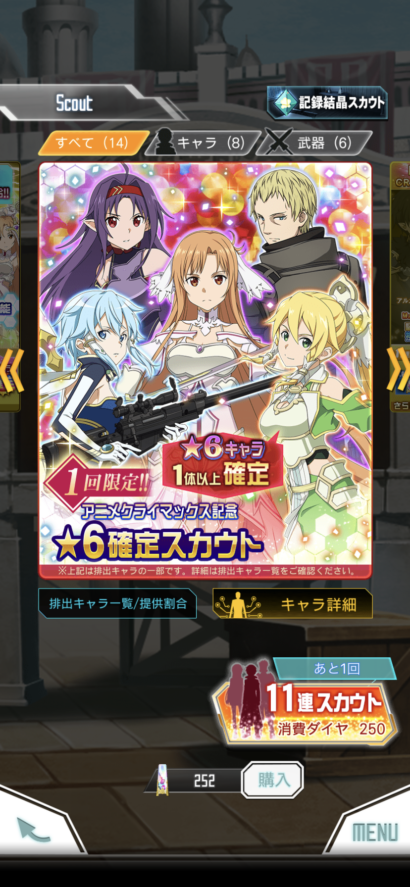 結果新キャラをお出迎えできませんでしたが、被りで得たアイテムでアスナをレベル100にできたから良しとしましょう(^^;;
